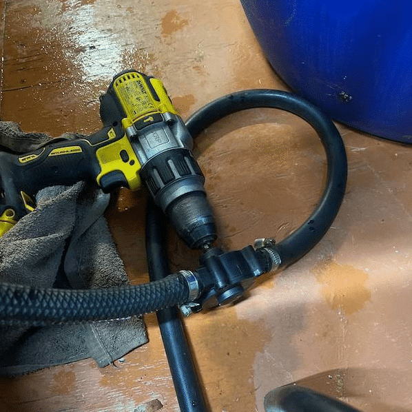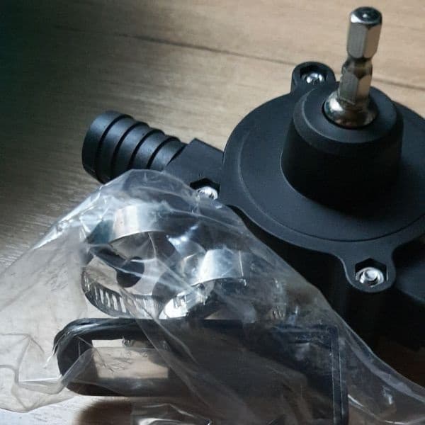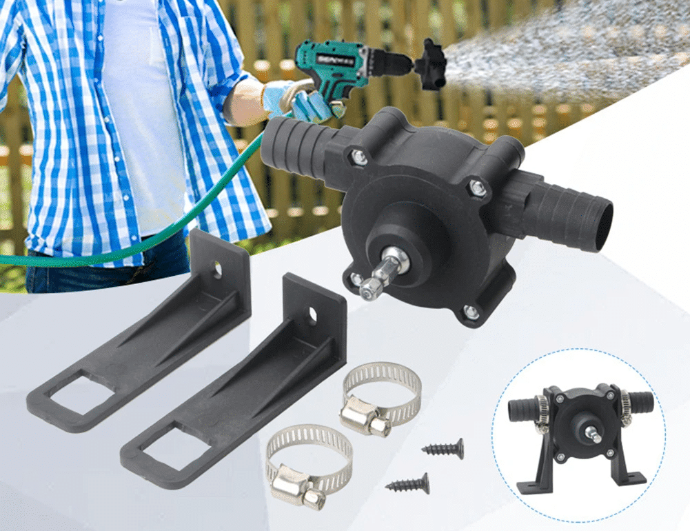Prenosná vodná pumpa, ktorá sa pripája k ručnej vŕtačke a dokáže prečerpať až 30 litrov vody za minútu