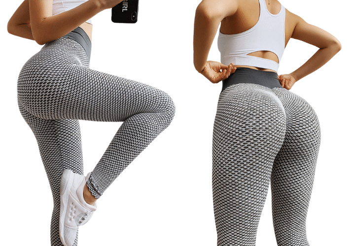 Vysoký pás na legínach stláča brucho a pôsobí ako presýpacie hodiny, zadoček je vyvýšený a nohy krásne tvarované.